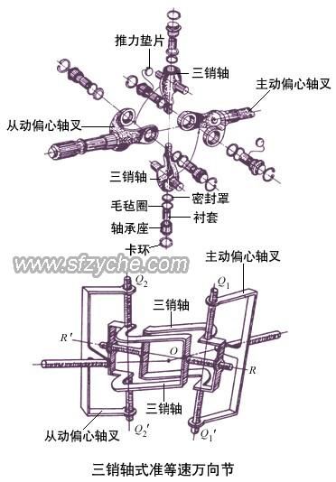 三銷軸式萬向節(jié)的特點是保證兩軸角速度接近相等;允許相鄰兩軸有較大的交角,最大可達45°,可使汽車獲得較小的轉彎半徑,提高汽車的機動性。這種萬向節(jié)的缺點是所占空間較大。優(yōu)點:允許相鄰兩軸間有較大的夾角,用于一些越野車的轉向驅動橋。如需了解更多軍車配件工作原理www.5656115.com