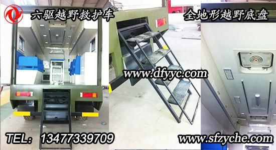 如需了解更多東風六驅(qū)越野救護車圖片,東風六驅(qū)越野醫(yī)療車價格,東風六驅(qū)越野救護車參數(shù),請立即撥打銷售熱線:13477339709 李經(jīng)理 0722-7053060 業(yè)務QQ:530233927,東風越野卡車網(wǎng)址:www.5656115.com 東風越野車:www.dfyyc.com 可在此越野底盤基礎(chǔ)上改裝成越野廂式車,越野油罐車、越野灑水車、越野消防車、越野隨車吊、越野吸污車、越野平板車、越野運兵車等專用越野車型。